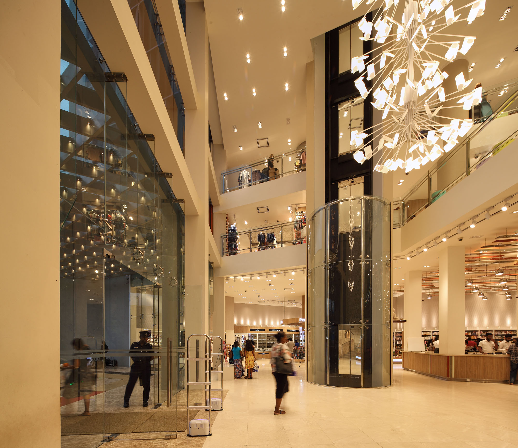 An elaborate and fashionable lifestyle space which brings a luxury retail experience to the area. The opulent character of the building is brought by the elegant facade and is heightened by the spacious interior, Lit with the warm glow from the lighting. |