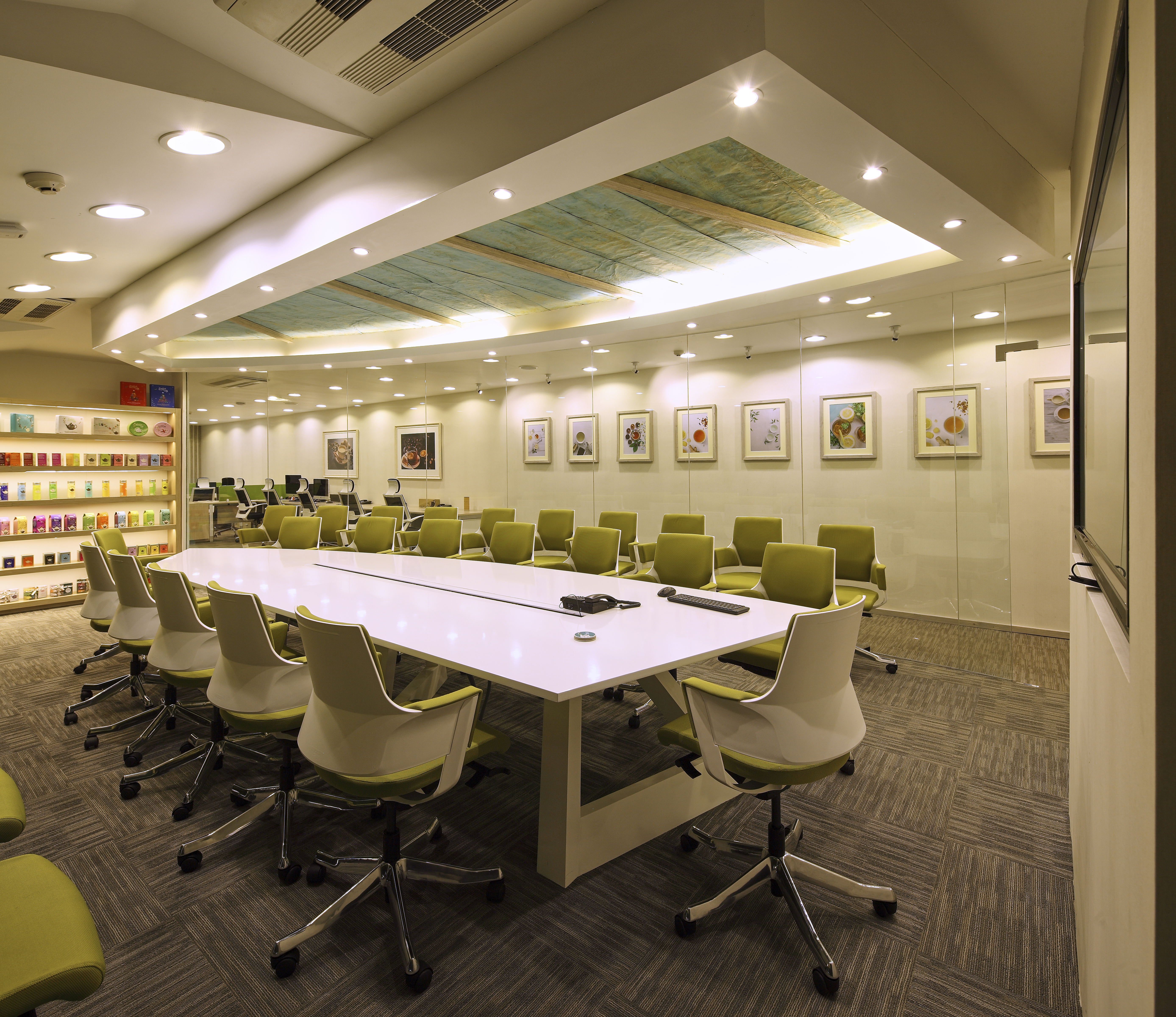 The design was inspired by the dynamism and energy of the people of Amazone Teas and their brand, which promises organically harvested tea and value from tip to cup. The interior attempted to project out this personality in visual and spatial form. Colour schemes, textures and lighting has been carefully designed to optimize the comfort and work efficiency The interior was mainly designed incorporating colours, textures and shapes inspired by the tea leaf and its flavours. |