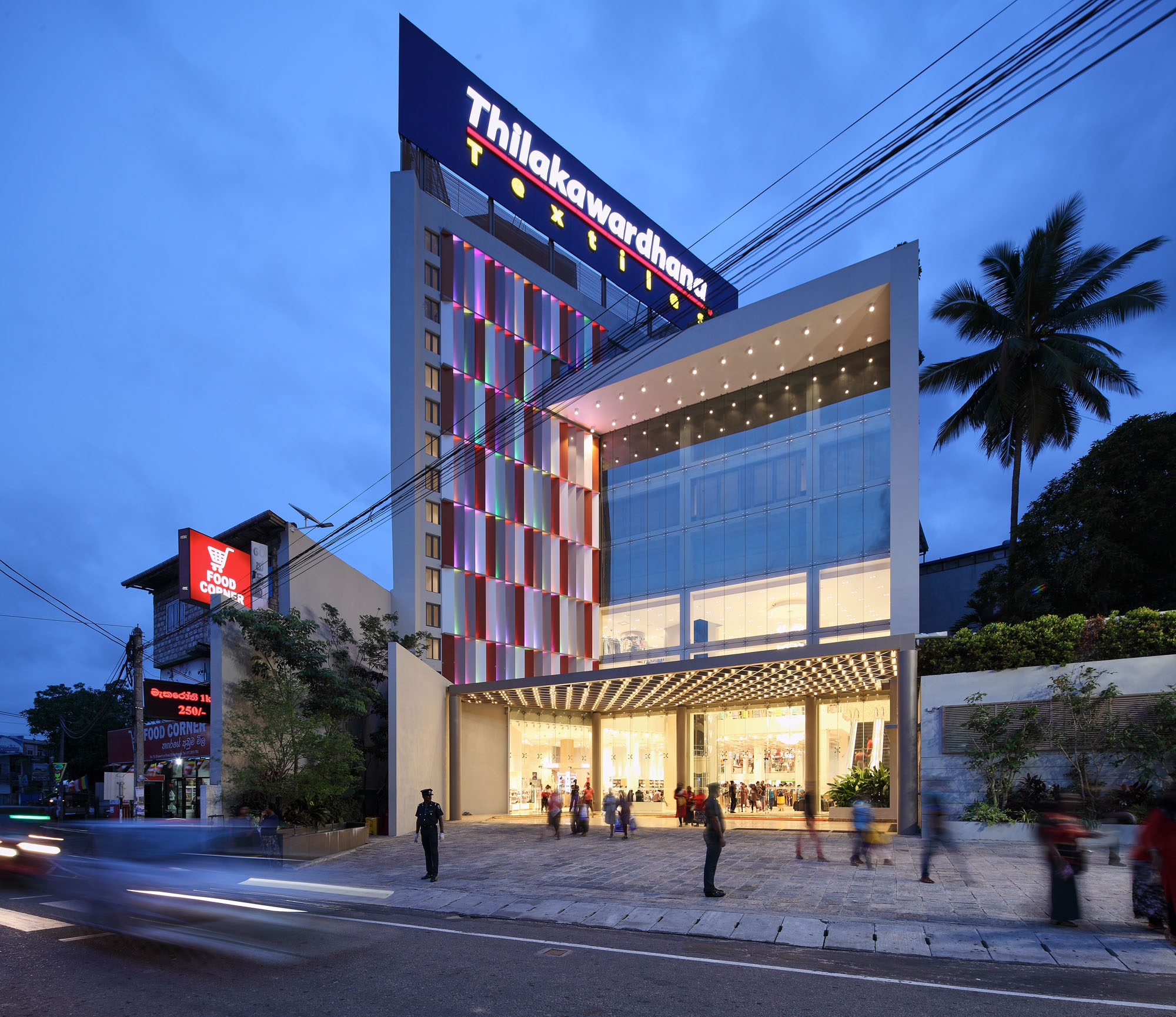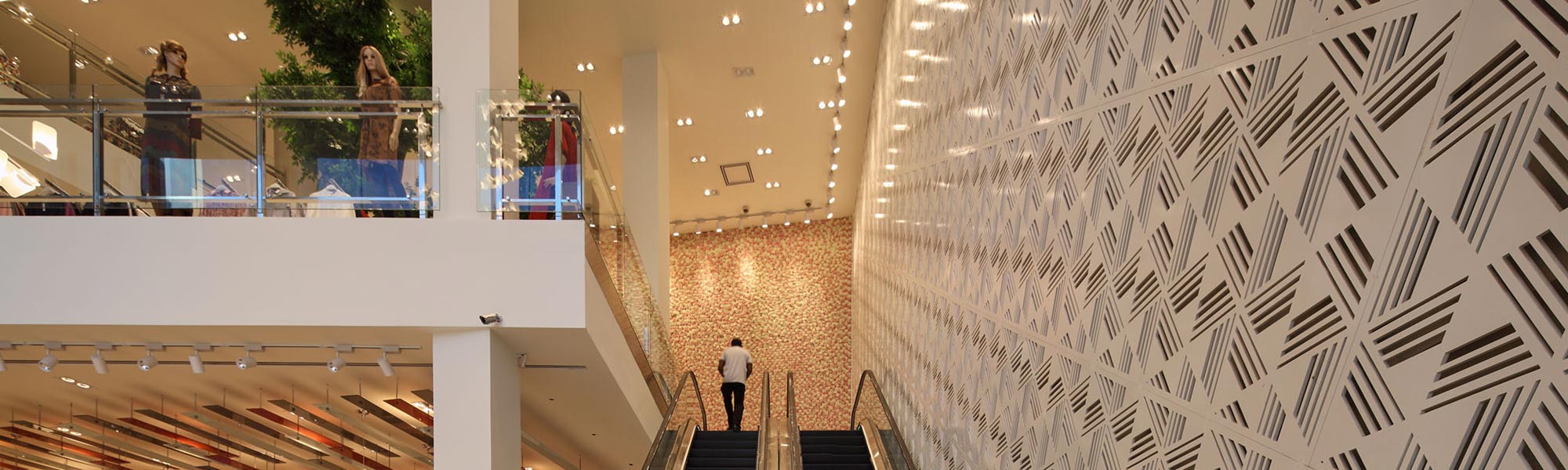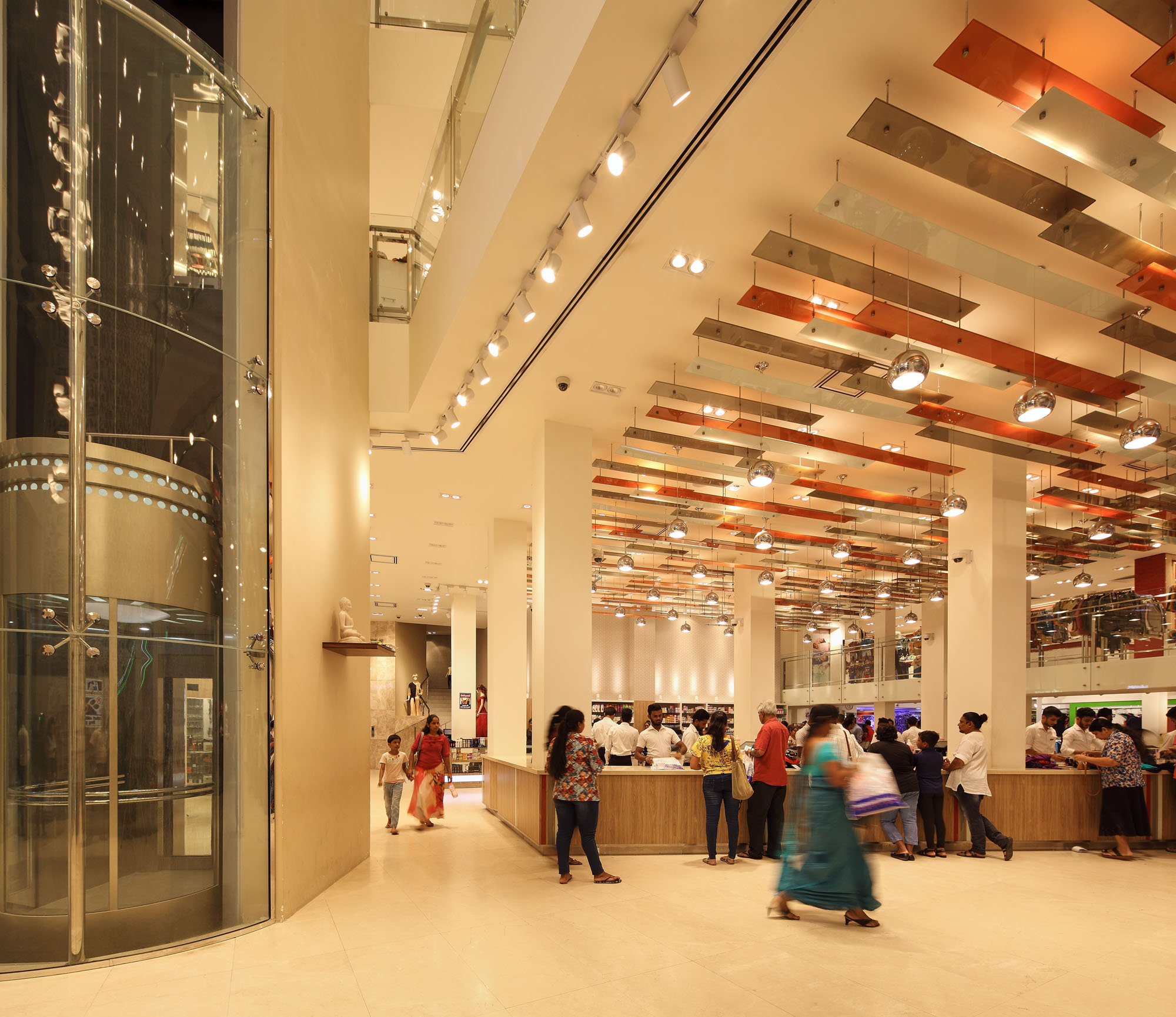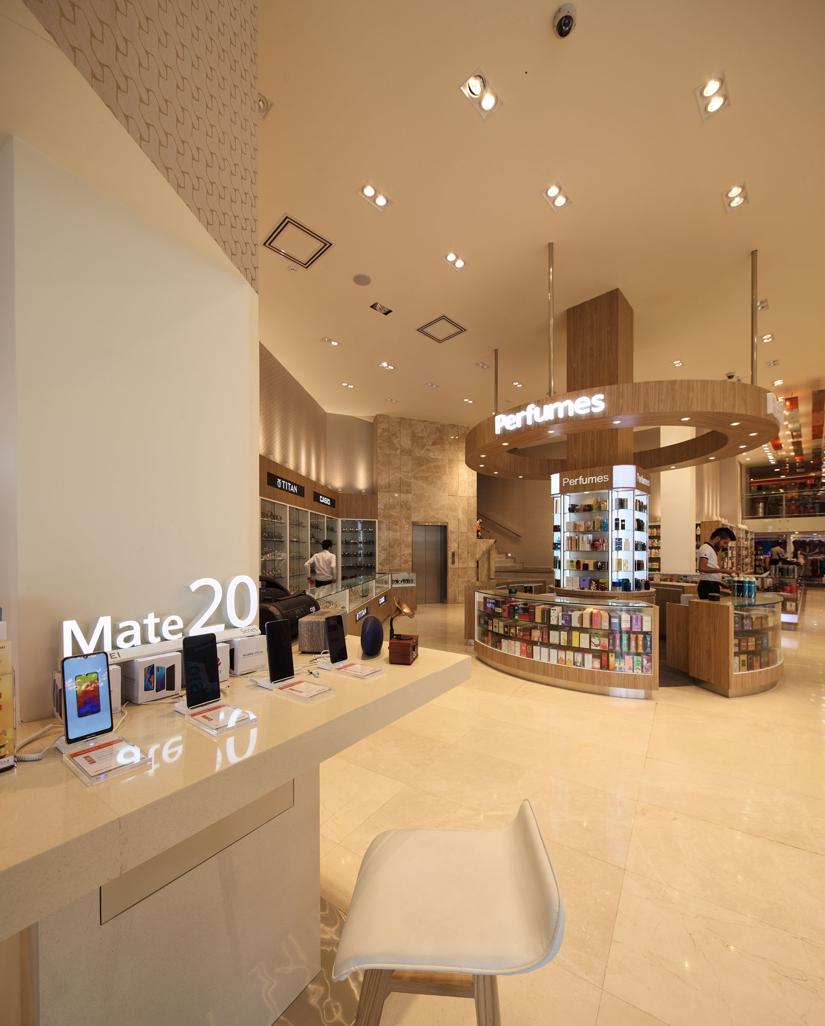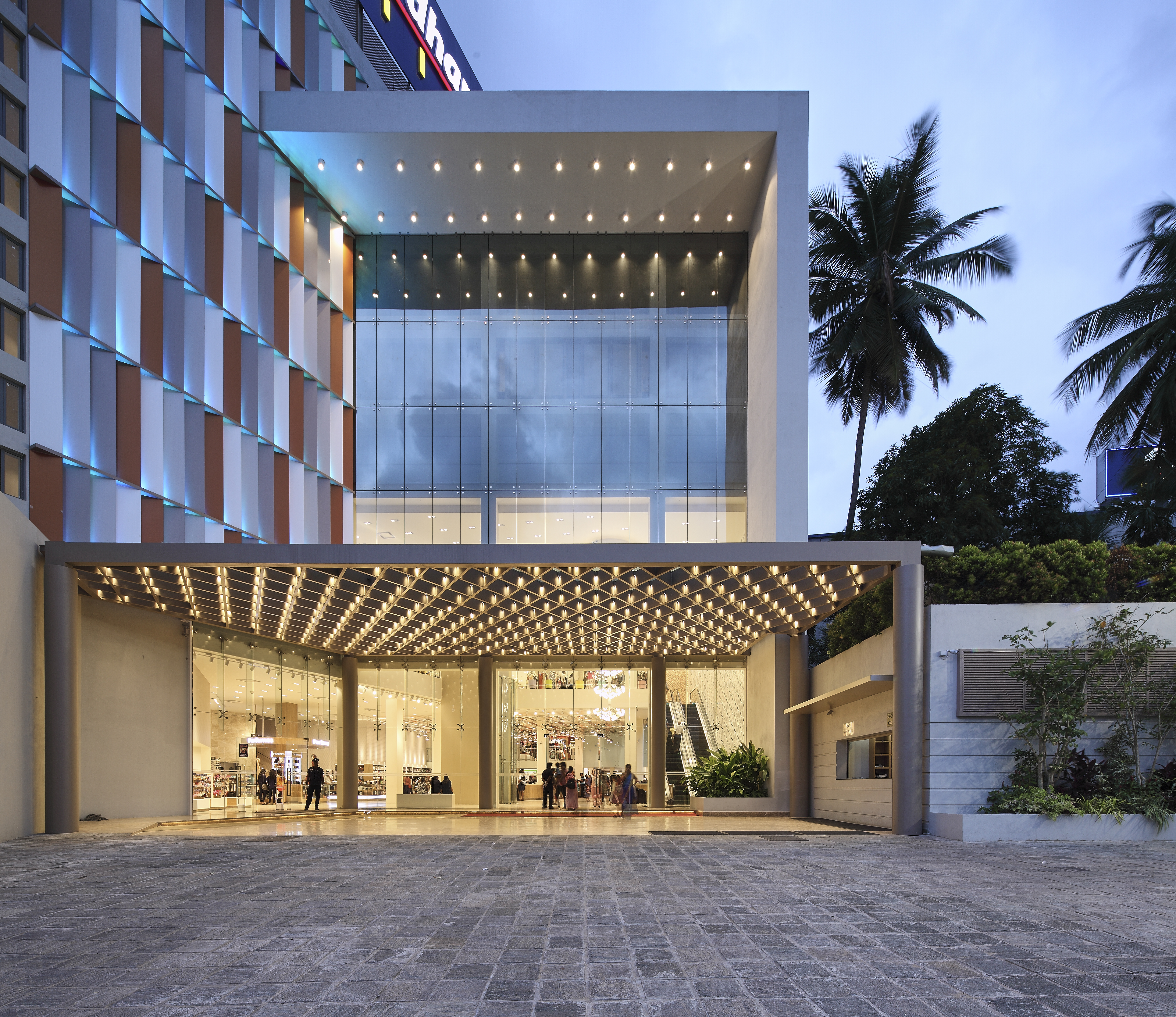 An elaborate and fashionable lifestyle space which brings a luxury retail experience to the area. The opulent character of the building is brought by the elegant facade and is heightened by the spacious interior, Lit with the warm glow from the lighting. |
